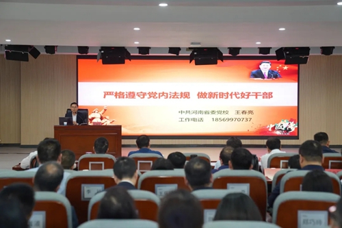 集團黨委邀請河南省委黨校中共黨史教研部王春亮副教授,以《嚴格遵守黨內(nèi)法規(guī) 做新時代好干部》為題展開宣講。王教授分別從紀律嚴明是黨的光榮傳統(tǒng)和獨特優(yōu)勢、黨員干部嚴格遵守黨內(nèi)法規(guī)的迫切性和做嚴守黨內(nèi)法規(guī)好干部的主要著力點三個方面宣講,號召全體黨員干部要以黨紀學(xué)習(xí)教育為契機,上好黨性鍛煉“必修課”。